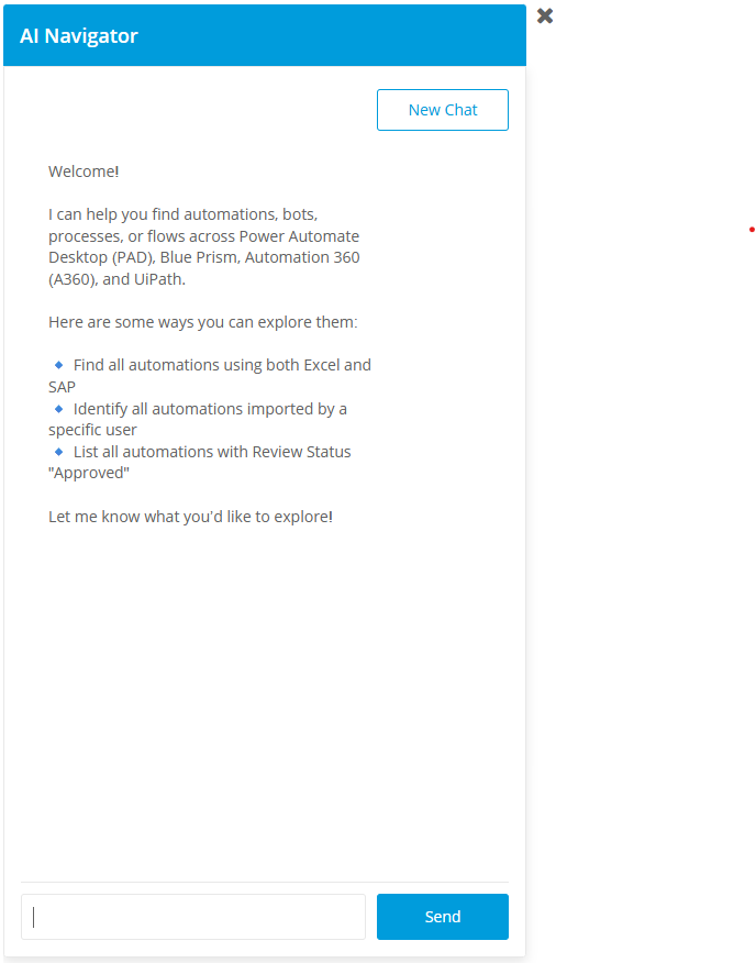 ) in the bottom right corner of the screen.- A side panel opens on the right side of the screen where you can interact with the AI Navigator regarding any of your processes in Assess.