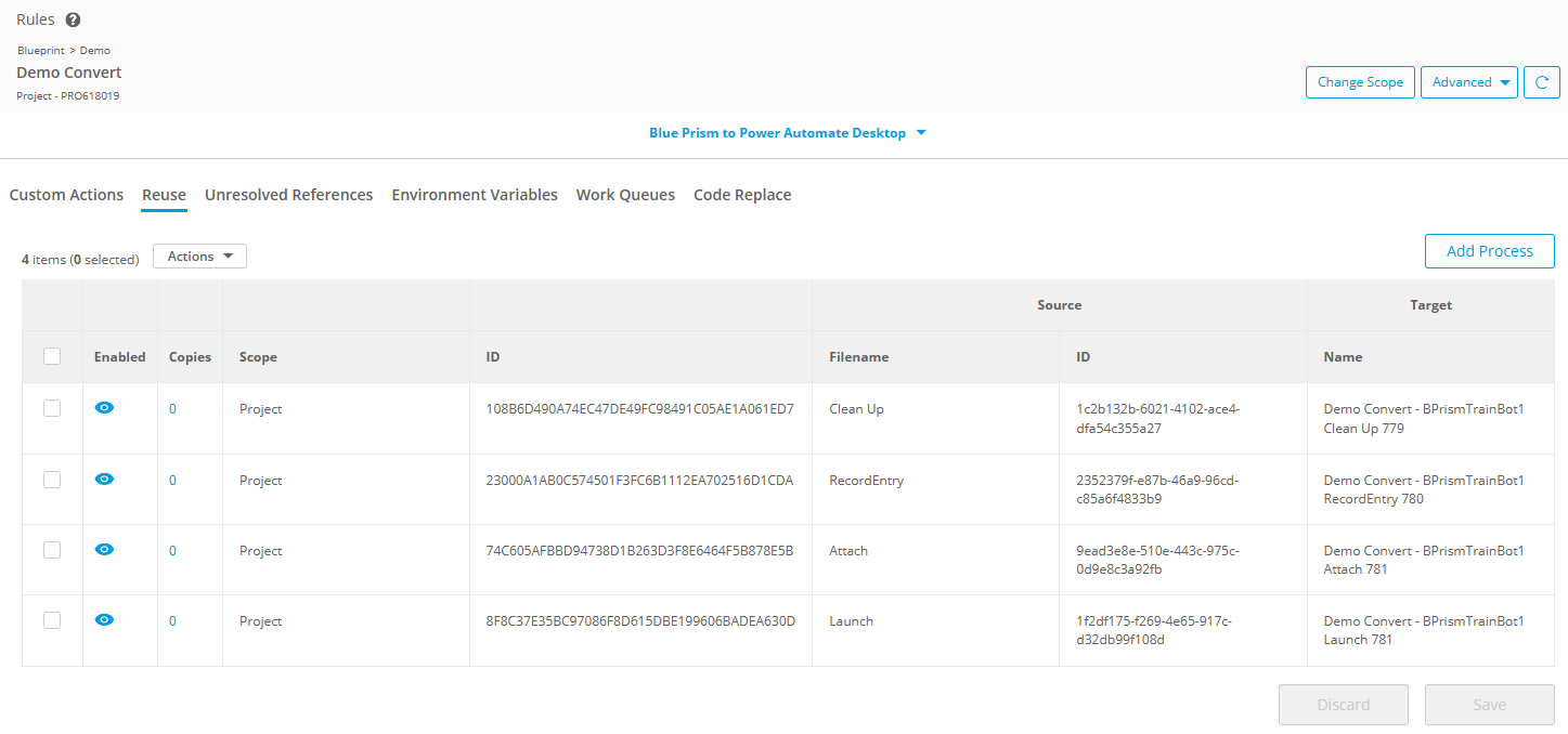 - Creates Reuse Rules for each of the VBO actions so that future conversions of processes/objects that use those VBO actions will automatically reference the PAD flows.